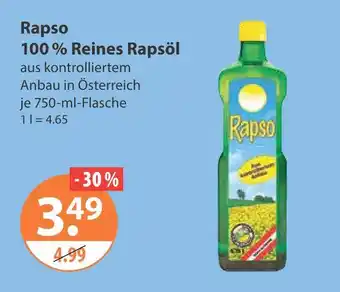 Jetzt im Angebot bei V Markt: Rapso 100 % reines rapsöl ✅ Aktion gültig vom 22-01 bis 28-01.
