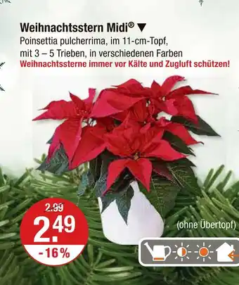 Jetzt im Angebot bei V Markt: Weihnachtsstern midi ✅ Aktion gültig vom 18-12 bis 24-12.