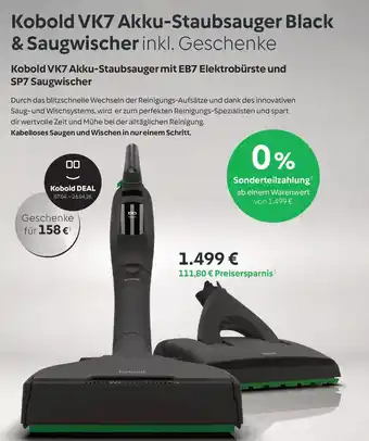 Jetzt im Angebot bei Vorwerk: Kobold VK7 Akku-Staubsauger mit EB7 Elektrobürste und SP7 Saugwischer ✅ Aktion gültig vom 9-04 bis 20-04.