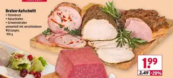 Abgesehen von Braten-Aufschnitt, bietet Wasgau eine Menge anderer Artikel an. Behalten Sie den wöchentlichen Wasgau Prospekt im Blick, um die besten Angebote und Aktionen nicht zu verpassen. Abgesehen von Braten-Aufschnitt können Sie weitere, interessante Angebote entdecken: Jungbullen-Braten, Aufschnitt-Dreierlei & Fleischkäse-Aufschnitt.