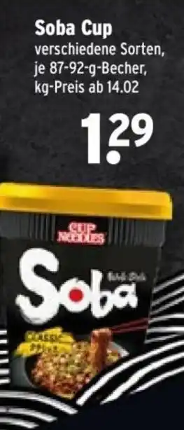 Das Angebot ist in verschiedenen Geschäften erhältlich. Schauen Sie sich alle Produkte an, um das günstigste NISSIN Soba Cup zu ergattern. Wenn Sie gerne nachschauen möchten, ob der Artikel woanders noch günstiger ist, werfen Sie einen Blick auf die Kategorie 'Supermärkte'. Möglicherweise sind diese Angebote auch interessant für Sie: Nissin Soba Cup Big, Nissin Soba Cup Big & Nissin Cup Noodles Soba.