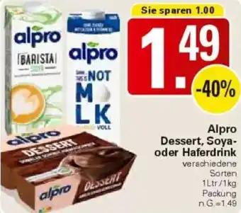 Alpro Dessert, Soya oder Haferdrink-Angebot bei WEZ