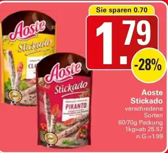 Den Preis von dem Aoste Stickado finden Sie auch oben auf der Website, zusammen mit dem Datum, ab wann das Angebot erhältlich ist. Sie können die Preise auch im aktuellen WEZ Prospekt nachhalten oder auf der WEZ Website nachschauen. Durch die Angebote können Sie sicher sein, die WEZ Produkte zum absoluten Bestpreis zu ergattern.