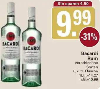 Den Preis von dem Bacardi Rum finden Sie auch oben auf der Website, zusammen mit dem Datum, ab wann das Angebot erhältlich ist. Sie können die Preise auch im aktuellen WEZ Prospekt nachhalten oder auf der WEZ Website nachschauen. Durch die Angebote können Sie sicher sein, die WEZ Produkte zum absoluten Bestpreis zu ergattern.