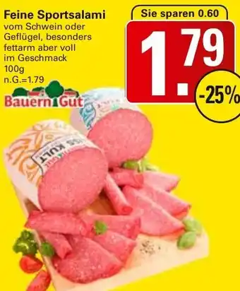 Jetzt im Angebot bei WEZ: Bauern Gut Feine Sportsalami ✅ Aktion gültig vom 16-02 bis 21-02.
