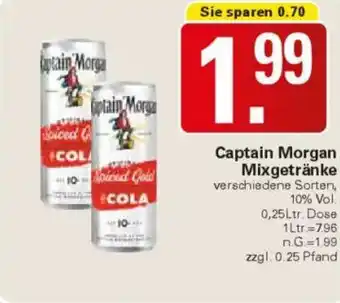 Den Preis von dem Captain Morgan Mixgetränke finden Sie auch oben auf der Website, zusammen mit dem Datum, ab wann das Angebot erhältlich ist. Sie können die Preise auch im aktuellen WEZ Prospekt nachhalten oder auf der WEZ Website nachschauen. Durch die Angebote können Sie sicher sein, die WEZ Produkte zum absoluten Bestpreis zu ergattern.