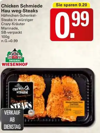 Jetzt im Angebot bei WEZ: WIESENHOF Chicken Schmiede Hau weg-Steaks ✅ Aktion gültig vom 12-01 bis 17-01.