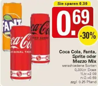 Coca Cola, Fanta, Sprite oder Mezzo Mix 0.33 l