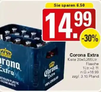 Den Preis von dem Corona Extra finden Sie auch oben auf der Website, zusammen mit dem Datum, ab wann das Angebot erhältlich ist. Sie können die Preise auch im aktuellen WEZ Prospekt nachhalten oder auf der WEZ Website nachschauen. Durch die Angebote können Sie sicher sein, die WEZ Produkte zum absoluten Bestpreis zu ergattern.