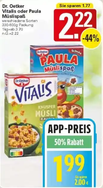Dr. Oetker Vitalis oder Paula Müslispaẞ Angebote und Aktionen bei WEZ