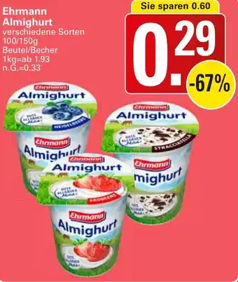 Abgesehen von Ehrmann Almighurt, bietet WEZ eine Menge anderer Artikel an. Behalten Sie den wöchentlichen WEZ Prospekt im Blick, um die besten Angebote und Aktionen nicht zu verpassen. Abgesehen von Ehrmann Almighurt können Sie weitere, interessante Angebote entdecken: EHRMANN Almighurt, Ehrmann Almighurt & Ehrmann Almighurt.