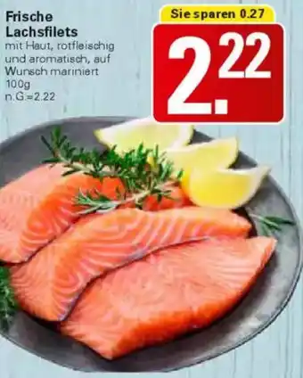 Den Preis von dem Frische Lachsfilets finden Sie auch oben auf der Website, zusammen mit dem Datum, ab wann das Angebot erhältlich ist. Sie können die Preise auch im aktuellen WEZ Prospekt nachhalten oder auf der WEZ Website nachschauen. Durch die Angebote können Sie sicher sein, die WEZ Produkte zum absoluten Bestpreis zu ergattern.