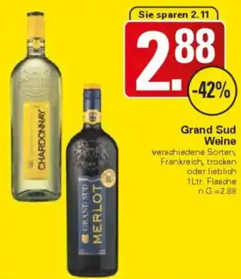 Den Preis von dem Grand Sud Weine finden Sie auch oben auf der Website, zusammen mit dem Datum, ab wann das Angebot erhältlich ist. Sie können die Preise auch im aktuellen WEZ Prospekt nachhalten oder auf der WEZ Website nachschauen. Durch die Angebote können Sie sicher sein, die WEZ Produkte zum absoluten Bestpreis zu ergattern.