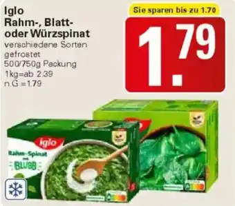 Iglo Rahm, Blatt oder Würzspinat Aktion bei WEZ