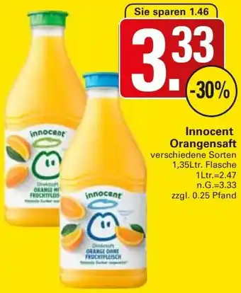 Diese Woche ist Innocent Orangensaft bei WEZ reduziert erhältlich. Hier finden Sie alle Informationen zu Preisen, Aktionsdetails und Laufzeit. Prüfen Sie weitere Innocent Orangensaft Aktionen, um sicherzugehen, dass Sie den besten Preis erhalten. Die Innocent Orangensaft Aktion gilt in Kalenderwoche 04. Nach Ablauf zeigen wir Ihnen vergleichbare Alternativen. Abonnieren Sie die Kategorie, um beim nächsten Mal direkt informiert zu sein, wenn Innocent Orangensaft wieder reduziert ist.Häufig gestellte Fragen über Innocent Orangensaft
