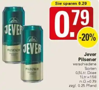 Abgesehen von Jever Pilsener, bietet WEZ eine Menge anderer Artikel an. Behalten Sie den wöchentlichen WEZ Prospekt im Blick, um die besten Angebote und Aktionen nicht zu verpassen. Abgesehen von Jever Pilsener können Sie weitere, interessante Angebote entdecken: Jever Pilsener, Jever Pilsener & Jever Pilsener.