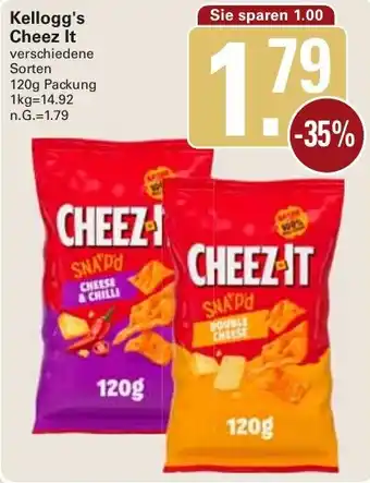 Den Preis von dem Kellogg's Cheez It finden Sie auch oben auf der Website, zusammen mit dem Datum, ab wann das Angebot erhältlich ist. Sie können die Preise auch im aktuellen WEZ Prospekt nachhalten oder auf der WEZ Website nachschauen. Durch die Angebote können Sie sicher sein, die WEZ Produkte zum absoluten Bestpreis zu ergattern.