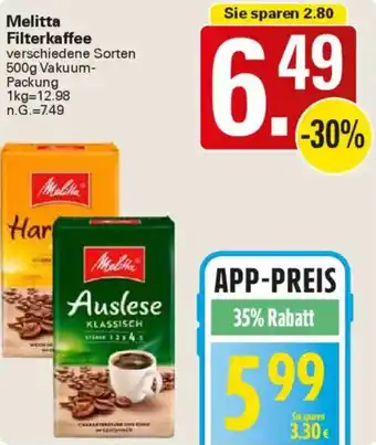 Melitta Filterkaffee Angebote und Aktionen bei WEZ