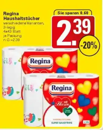 Den Preis von dem Regina Haushaltstücher finden Sie auch oben auf der Website, zusammen mit dem Datum, ab wann das Angebot erhältlich ist. Sie können die Preise auch im aktuellen WEZ Prospekt nachhalten oder auf der WEZ Website nachschauen. Durch die Angebote können Sie sicher sein, die WEZ Produkte zum absoluten Bestpreis zu ergattern.