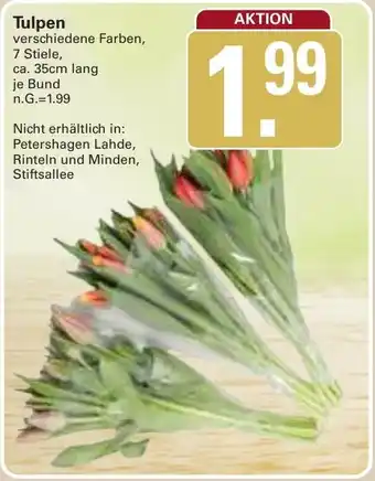 Abgesehen von Tulpen, bietet WEZ eine Menge anderer Artikel an. Behalten Sie den wöchentlichen WEZ Prospekt im Blick, um die besten Angebote und Aktionen nicht zu verpassen. Abgesehen von Tulpen können Sie weitere, interessante Angebote entdecken: Wernesgrüner Bier, Cherry Romatomaten & HOPPE Rauchfrisches Kasseler Lachsfleisch.
