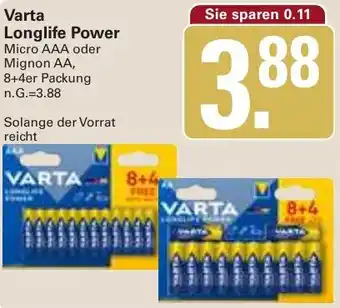 Varta Longlife Power Angebote und Online Aktionen direkt aus dem aktuellen WEZ Angebot