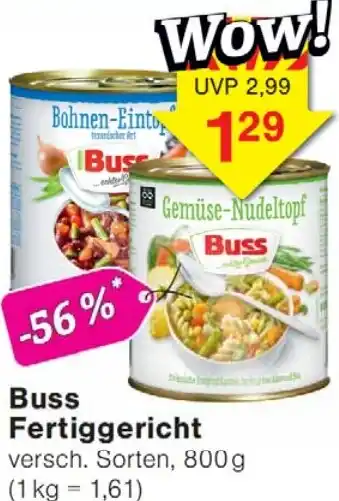 Den Preis von dem Buss Fertiggericht finden Sie auch oben auf der Website, zusammen mit dem Datum, ab wann das Angebot erhältlich ist. Sie können die Preise auch im aktuellen Wiglo Wunderland Prospekt nachhalten oder auf der Wiglo Wunderland Website nachschauen. Durch die Angebote können Sie sicher sein, die Wiglo Wunderland Produkte zum absoluten Bestpreis zu ergattern.
