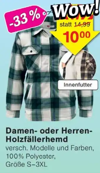 Damen- oder Herren- Holzfällerhemd Angebote und Aktionen bei Wiglo Wunderland