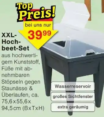 Abgesehen von XXL Hochbeet-Set, bietet Wiglo Wunderland eine Menge anderer Artikel an. Behalten Sie den wöchentlichen Wiglo Wunderland Prospekt im Blick, um die besten Angebote und Aktionen nicht zu verpassen. Abgesehen von XXL Hochbeet-Set können Sie weitere, interessante Angebote entdecken: XXL- Hochbeet-Set, XXL-Hochbeet & Juwel Hochbeet Timber XXL.