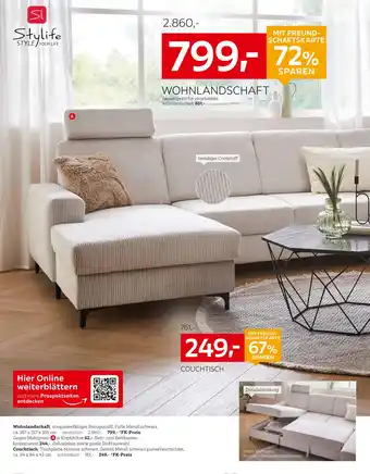 Den Preis von dem Stylife wohnlandschaft finden Sie auch oben auf der Website, zusammen mit dem Datum, ab wann das Angebot erhältlich ist. Sie können die Preise auch im aktuellen XXXLutz Prospekt nachhalten oder auf der XXXLutz Website nachschauen. Durch die Angebote können Sie sicher sein, die XXXLutz Produkte zum absoluten Bestpreis zu ergattern.