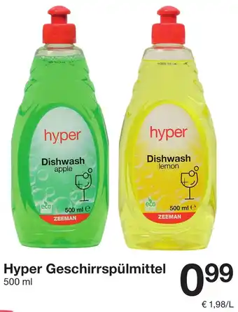 Jetzt im Angebot bei Zeeman: Hyper Geschirrspülmittel ✅ Aktion gültig vom 27-12 bis 9-01.