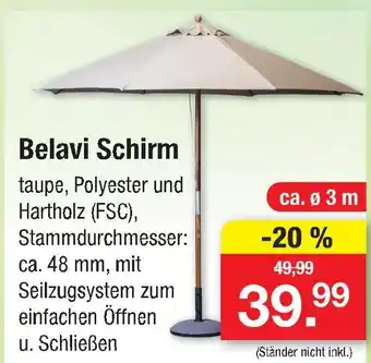Den Preis von dem Belavi schirm finden Sie auch oben auf der Website, zusammen mit dem Datum, ab wann das Angebot erhältlich ist. Sie können die Preise auch im aktuellen Zimmermann Prospekt nachhalten oder auf der Zimmermann Website nachschauen. Durch die Angebote können Sie sicher sein, die Zimmermann Produkte zum absoluten Bestpreis zu ergattern.