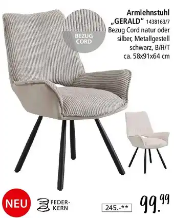 Jetzt im Angebot bei Zurbrüggen: Armlehnstuhl ,,GERALD" ✅ Aktion gültig vom 12-12 bis 10-01.