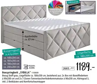 Jetzt im Angebot bei Zurbrüggen: Boxspringbett ,,SYBILLA" ✅ Aktion gültig vom 9-01 bis 26-01.