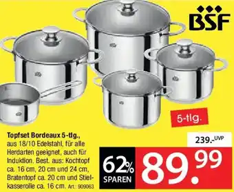Jetzt im Angebot bei Zurbrüggen: BSF Topfset Bordeaux 5-tlg. ✅ Aktion gültig vom 19-12 bis 3-01.