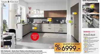 Das Angebot ist in verschiedenen Geschäften erhältlich. Schauen Sie sich alle Produkte an, um das günstigste Edle Farbkombi - Küche Novel Matira in Kaschmirbraun Lack matt zu ergattern. Wenn Sie gerne nachschauen möchten, ob der Artikel woanders noch günstiger ist, werfen Sie einen Blick auf die Kategorie 'Küchen und Badezimmer'. Möglicherweise sind diese Angebote auch interessant für Sie: Novel oder mican küche matira, Klassisch schön - Küche Nolte Windsor in Weiß Lack matt & Küche grafit hochglanz lack.