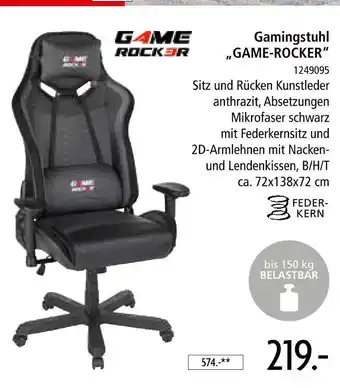 Jetzt im Angebot bei Zurbrüggen: Game rocker gamingstuhl game-rocker ✅ Aktion gültig vom 21-02 bis 28-03.