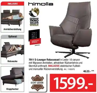 Himolla 7911 S-Lounger Relaxsessel Angebote und Online Aktionen direkt aus dem aktuellen Zurbrüggen Angebot