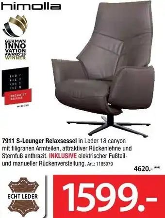 Himolla s-lounger relaxsessel Angebote und Online Aktionen direkt aus dem aktuellen Zurbrüggen Angebot