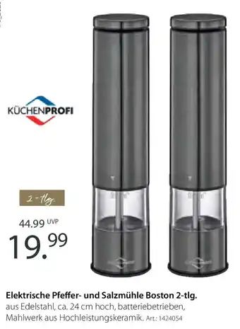Jetzt im Angebot bei Zurbrüggen: KÜCHENPROFI Elektrische Pfeffer- und Salzmühle Boston 2-tlg. ✅ Aktion gültig vom 14-04 bis 26-09.
