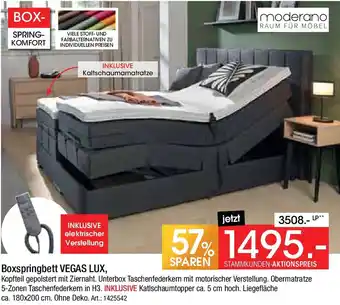 Jetzt im Angebot bei Zurbrüggen: moderano Boxspringbett VEGAS LUX ✅ Aktion gültig vom 10-04 bis 25-04.