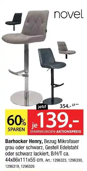 Jetzt im Angebot bei Zurbrüggen: Novel barhocker henry ✅ Aktion gültig vom 20-12 bis 3-01.
