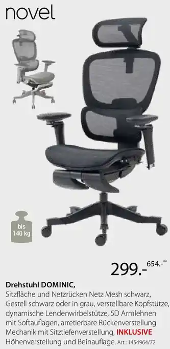 Jetzt im Angebot bei Zurbrüggen: Novel Drehstuhl DOMINIC ✅ Aktion gültig vom 18-01 bis 14-02.