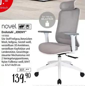 Jetzt im Angebot bei Zurbrüggen: Novel Drehstuhl ,,JEREMY" ✅ Aktion gültig vom 12-12 bis 10-01.