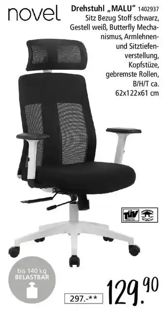 Jetzt im Angebot bei Zurbrüggen: Novel Drehstuhl ,,MALU" ✅ Aktion gültig vom 12-12 bis 10-01.