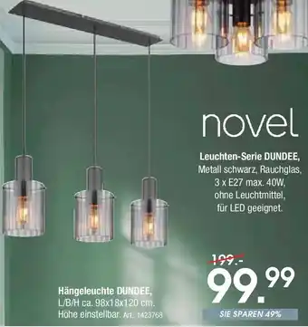 Den Preis von dem Novel Hängeleuchte DUNDEE finden Sie auch oben auf der Website, zusammen mit dem Datum, ab wann das Angebot erhältlich ist. Sie können die Preise auch im aktuellen Zurbrüggen Prospekt nachhalten oder auf der Zurbrüggen Website nachschauen. Durch die Angebote können Sie sicher sein, die Zurbrüggen Produkte zum absoluten Bestpreis zu ergattern.