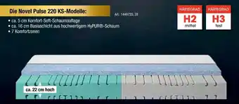 Abgesehen von Novel novel pulse 220 ks, bietet Zurbrüggen eine Menge anderer Artikel an. Behalten Sie den wöchentlichen Zurbrüggen Prospekt im Blick, um die besten Angebote und Aktionen nicht zu verpassen. Abgesehen von Novel novel pulse 220 ks können Sie weitere, interessante Angebote entdecken: Novel die novel pulse 240 ks-modelle, Die novel pulse 220 ks-modelle & Novel matratze pulse 240 ks-modell.