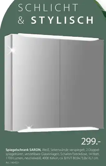 Jetzt im Angebot bei Zurbrüggen: SCHLICHT & STYLISCH Spiegelschrank SARON ✅ Aktion gültig vom 18-01 bis 14-02.