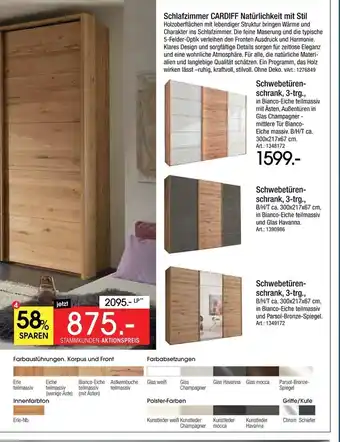 Schwebetürenschrank, 3-trg., bianco-eiche teilmassiv mit ästen, außentüren in glas champagner ist jetzt im Angebot bei Zurbrüggen, gültig vom 27-12-2025 bis 10-01-2026. Besuchen Sie die Website von Zurbrüggen oder kaufen Sie Schwebetürenschrank, 3-trg., bianco-eiche teilmassiv mit ästen, außentüren in glas champagner direkt im Geschäft. Auf Prospektangebote.de finden Sie immer die besten aktuellen Aktionen. Vergleichen Sie Schwebetürenschrank, 3-trg., bianco-eiche teilmassiv mit ästen, außentüren in glas champagner mit anderen Angeboten und prüfen Sie, ob sich ein Kauf jetzt lohnt. Behalten Sie kommende Aktionen im Blick, denn manche Produkte sind nur nächste Woche oder nur vor Ort verfügbar.Häufig gestellte Fragen über Schwebetürenschrank, 3-trg., bianco-eiche teilmassiv mit ästen, außentüren in glas champagner