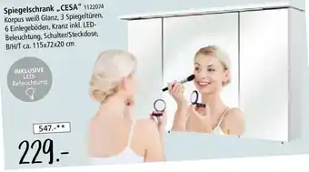 Jetzt im Angebot bei Zurbrüggen: Spiegelschrank ,,CESA" ✅ Aktion gültig vom 9-01 bis 26-01.
