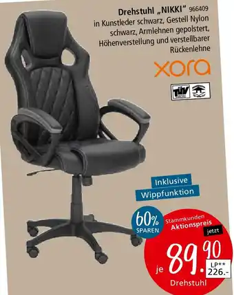 Jetzt im Angebot bei Zurbrüggen: Xora Drehstuhl ,,NIKKI" ✅ Aktion gültig vom 9-01 bis 26-01.
